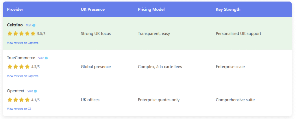 It is deeply affirming when independent customers validate our core commitment: Celtrino is dedicated to delivering transparent, reliable, and unparalleled EDI services. In a market often plagued by complex fee structures and declining support quality from legacy systems, we are proud to be recognised as the clear, high-performing alternative.